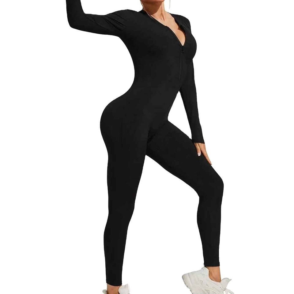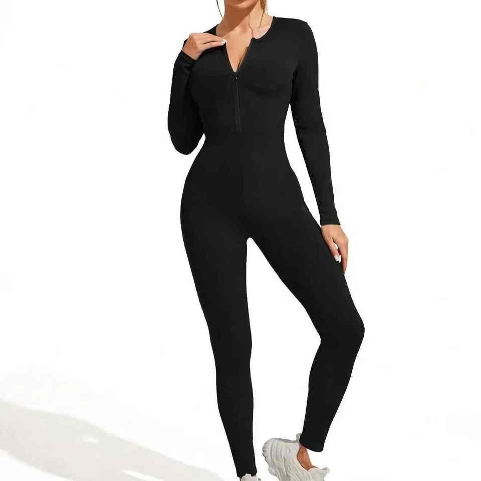 New Hot Sale Solid Color Ribbed Full Sleeves Zipper Skinny High Waist Breathable Quick Dry Women's Bodysuit