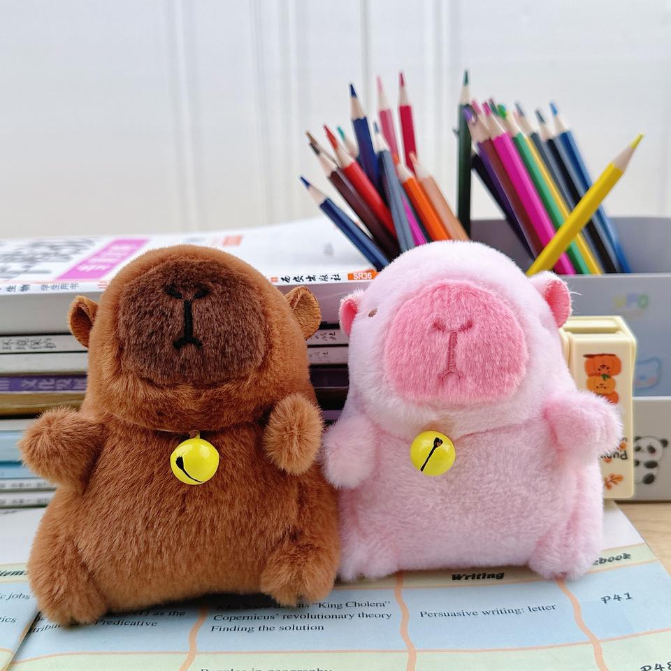 Hot New Cotton Stuffed Plush Capybara Bag Pendant Cute Wearing Bell Key Ring & Machine Doll for Birthday Gift