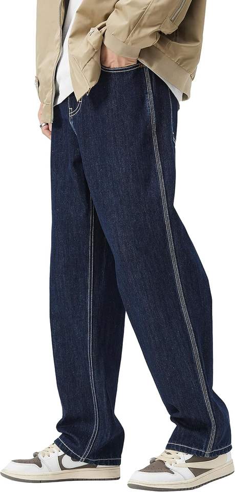 New Hot Sell Men's Slim Fit Jeans Custom Wide Denim Pants Casual Loose Fit Long Trousers OEM Front Logo