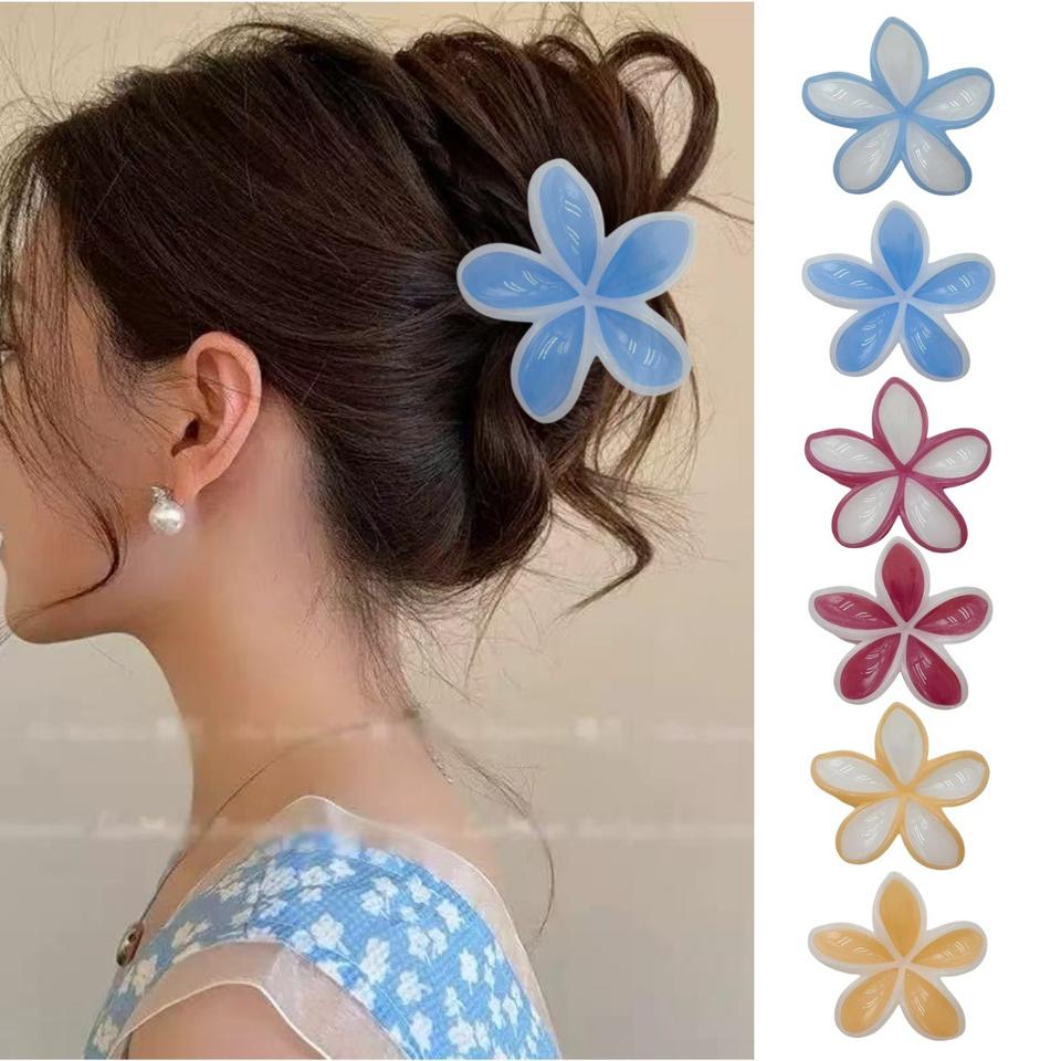 New Hot Sell Women Girls Plumeria Hair Accessories ABS Hawaiian Delicate Gradient Color Flower Hair Claw Clips