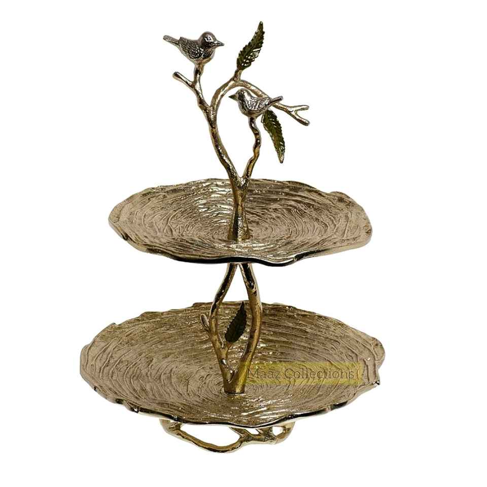 New Hot Selling Aluminum Metal Gold Leaf Shaped Cake Stand With Base Classic Design for Wedding Centerpiece Table Top Handmade