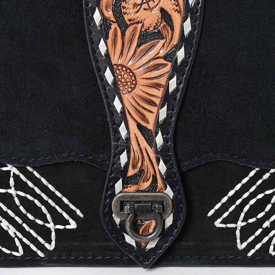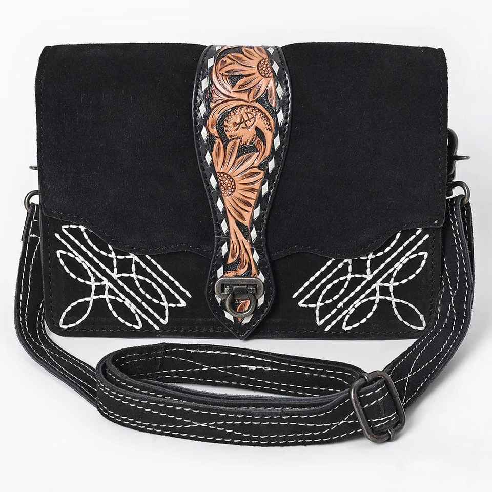 New Hot Selling Boot Stitch Black Suede Leather Western Crossbody Shoulder Bag Women's Luxury Genuine Leather Designer Handbag