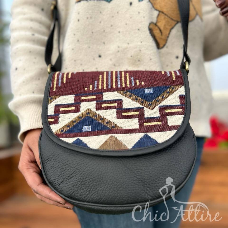 Product name:Stylish Jacquard Suede Fringe Leather Sling Bag
