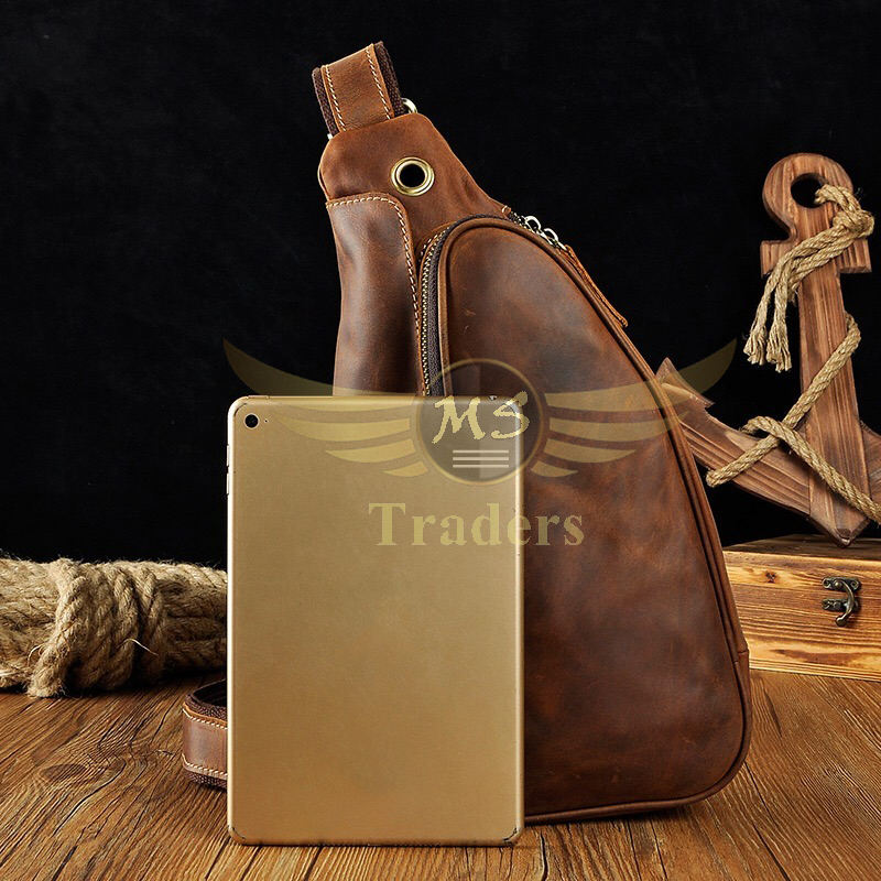 New Hot Selling Genuine Leather Men Chest Pack Fashionable Wear Shoulder Travel Crossbody Sling Bag Leather Brown Color