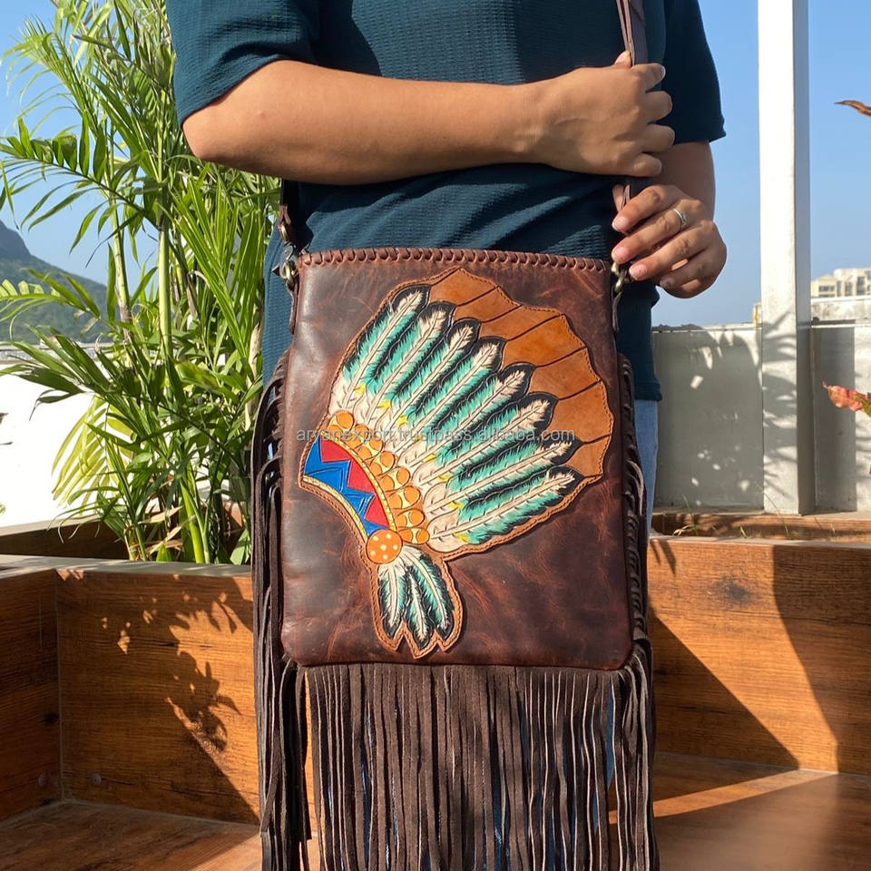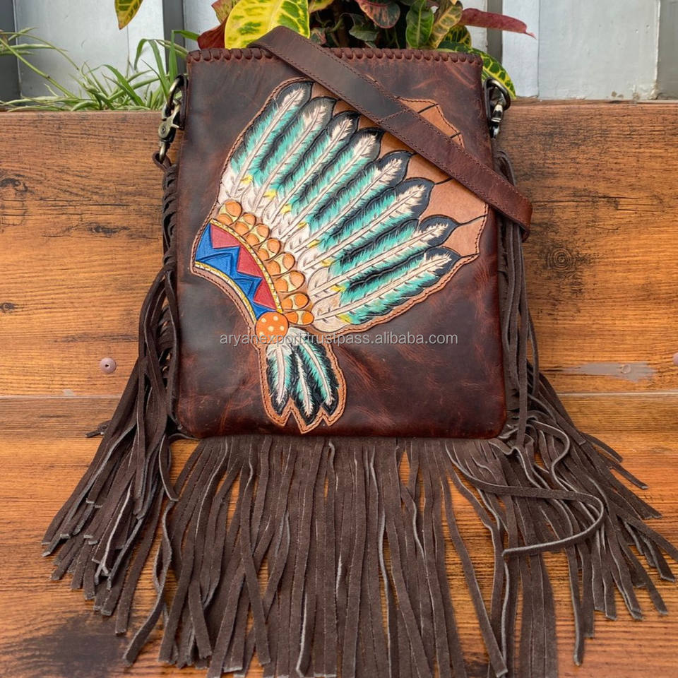 New Hot Selling Hand Tooled Genuine Leather Large Fringe Crossbody Bags for Women's Western Floral Pattern Concealed Carry Purse