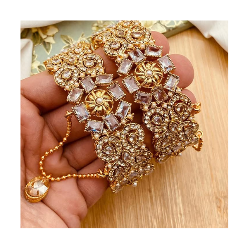 New Hot Selling Indian Wholesale Wedding Party Wear Ethnic Flower Gold/Silver Plated Kundan Bangles Set Premium Quality Jewelry