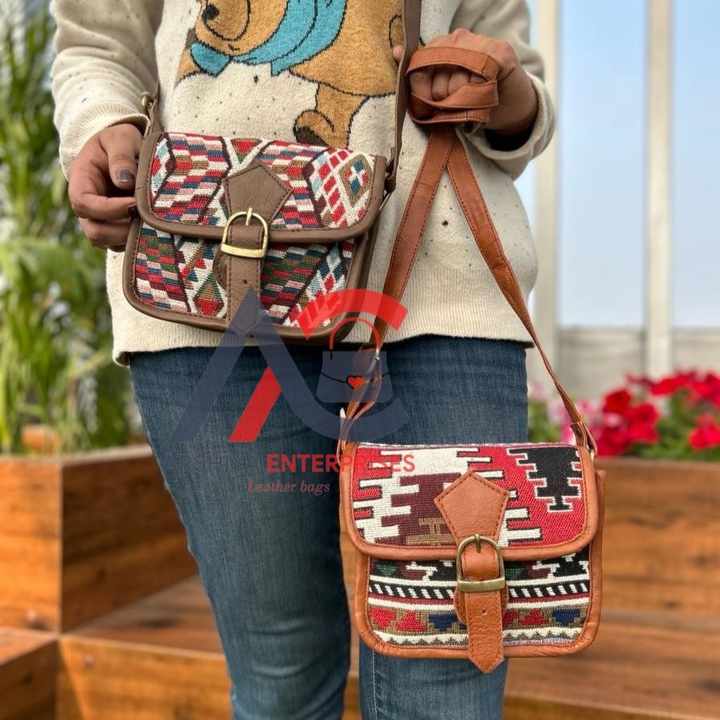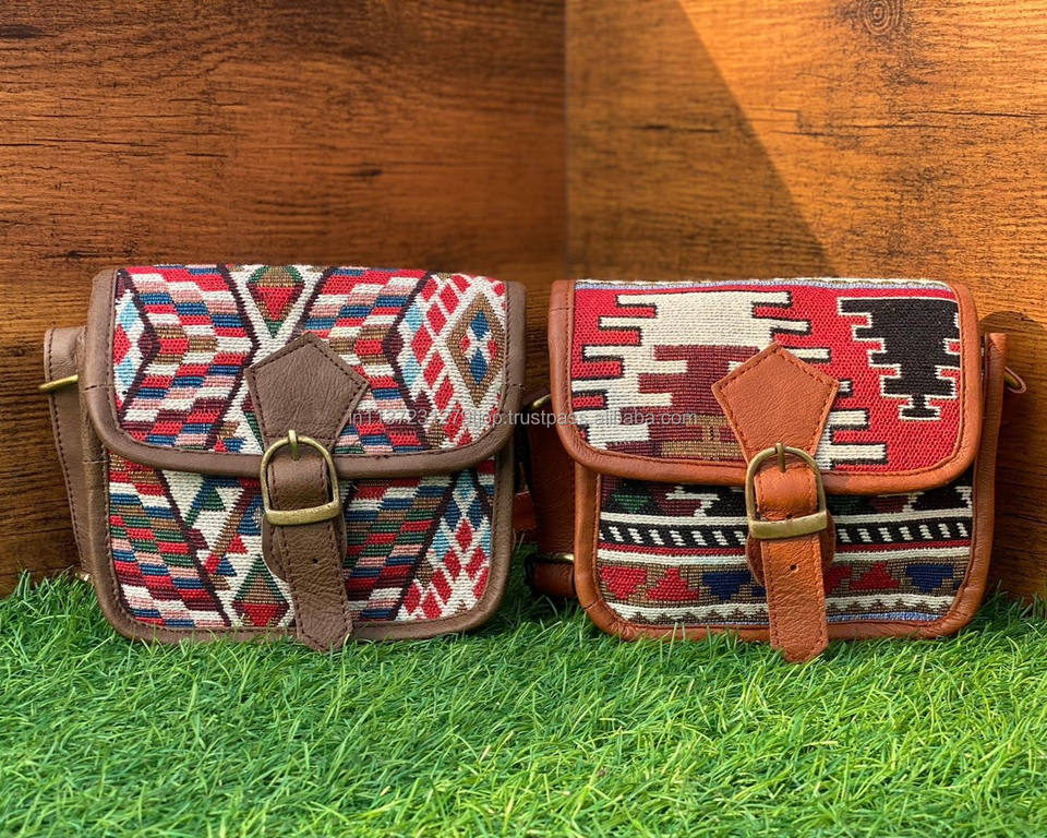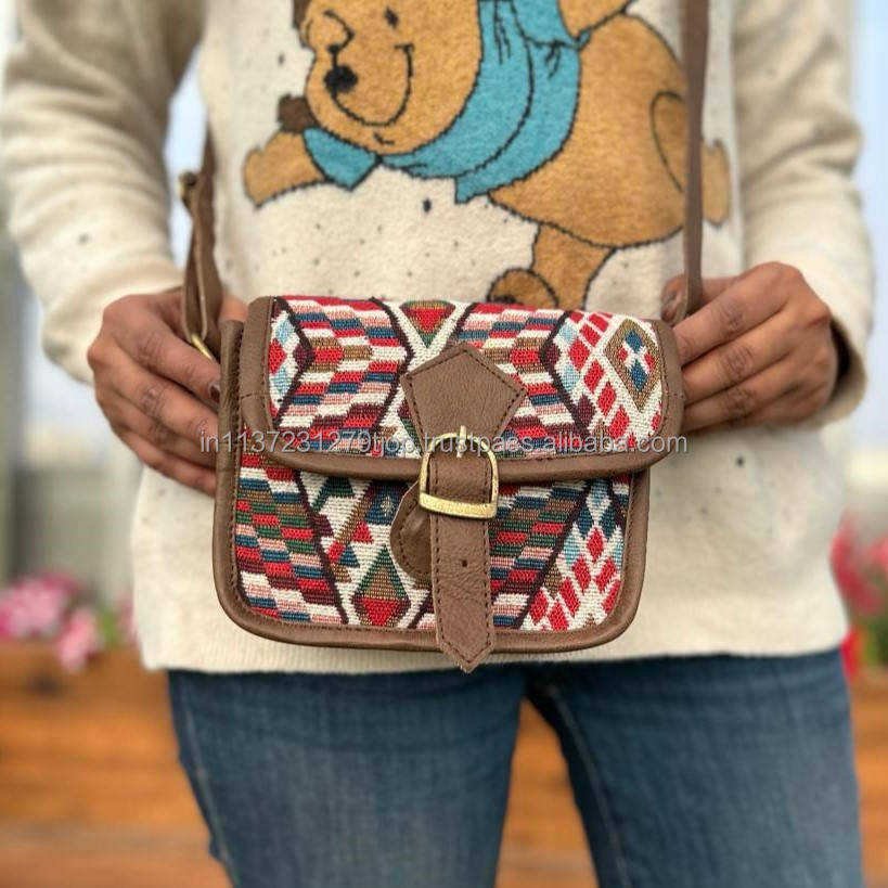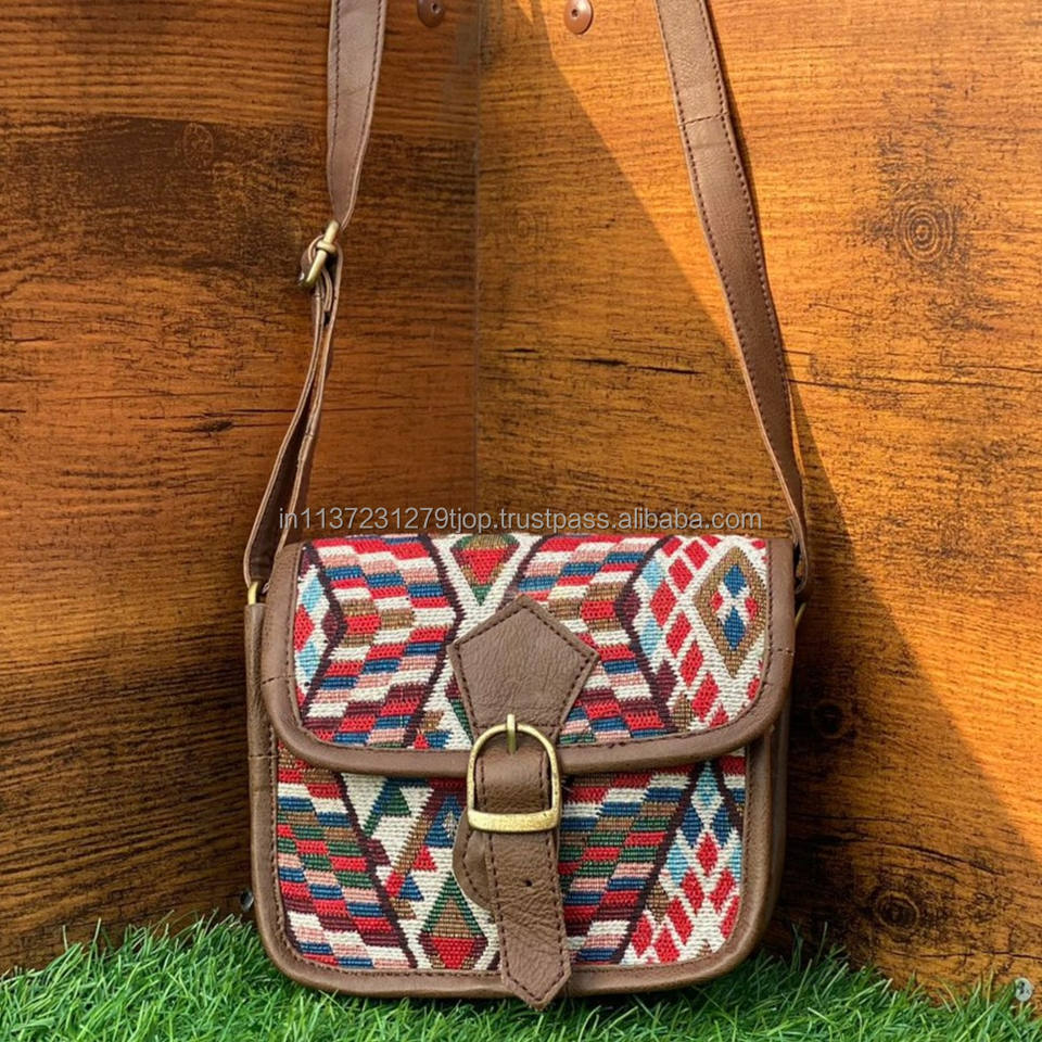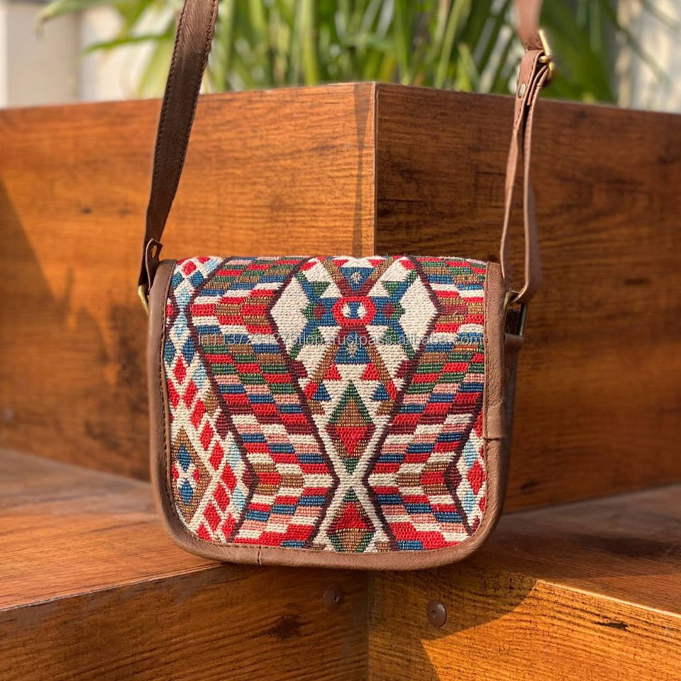 New Hot Selling Jacquard Handmade Genuine Leather Sling Bag Multi Use New Vintage Design Crossbody Bag Cheap Rate Bulk Products