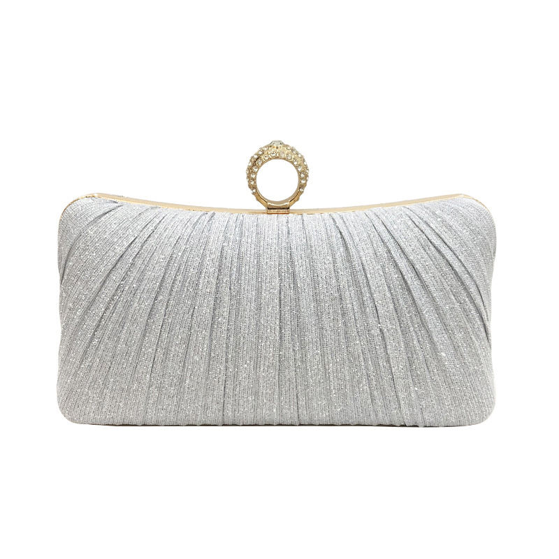 New Hot Selling Luxury Shiny Evening Bag Wrinkle Design Handbag Banquet Party Rhinestone Ladies Crossbody Chain Bag