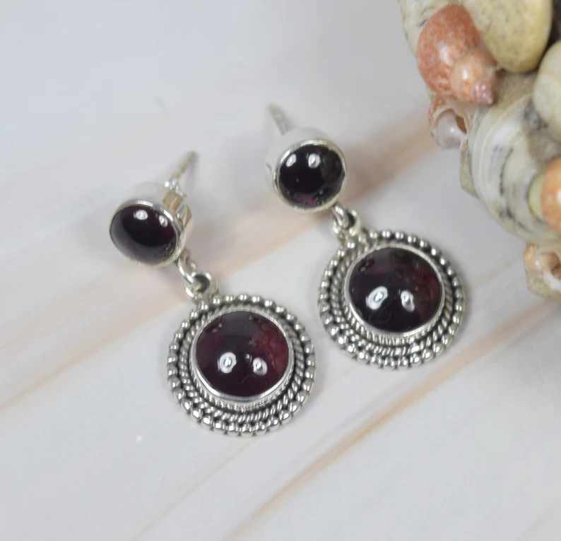 New Hot Selling Red Garnet 925 Sterling Silver Round Hook Earring Elegant Earring January Birthstone Christmas Gift Wholesale