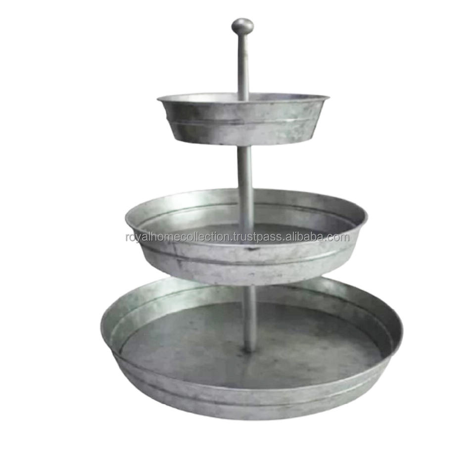 New Hot Selling Three Tier Cake Cupcake and Cookies Stand Decor Galvanized Metal Cake Serving Stand for Wedding and Party