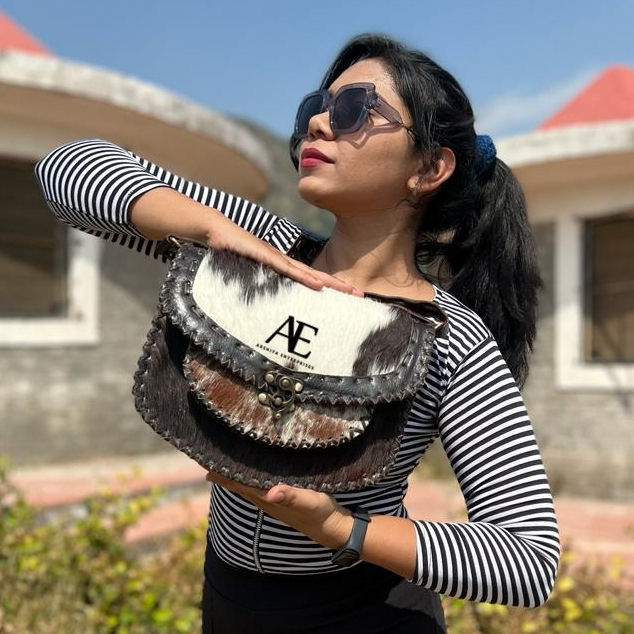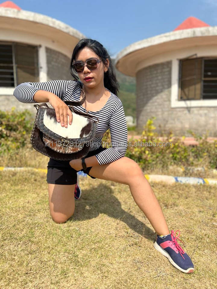 New Hot Selling Western Style Real Cowhide Fur Leather Sling Bags High Quality Fashionable Women Genuine Leather Crossbody Bags