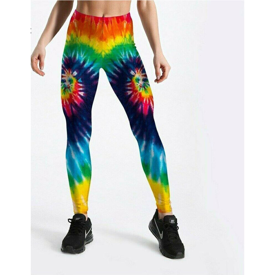 New Hot Selling Women Tie Dye Digital Print Yoga Fitness Pants Tights Woman Leggings