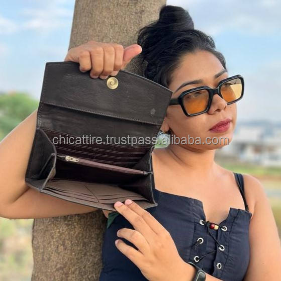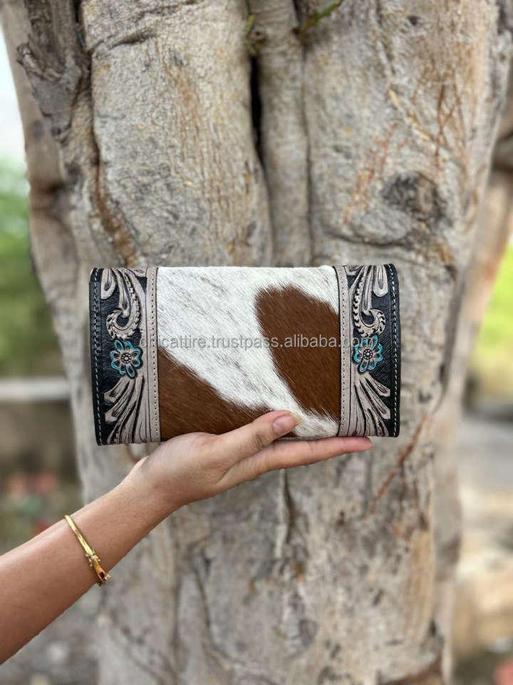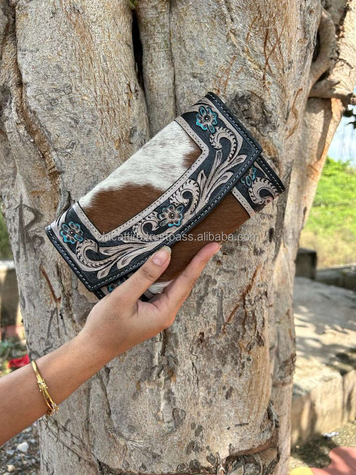 New Hot Selling Women's Hand Tooled Leather Wallet Money Credit Card Holder Purse Designer Genuine Cowhide Leather Luxury Clutch
