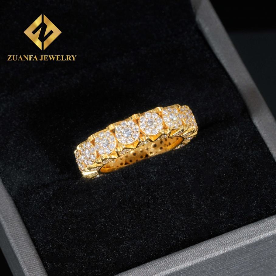 New Iced Out Hip Hop Rings 925 Sterling Silver 18K Gold Plated Fully Moissanite Diamond Ring Custom Rings for Men