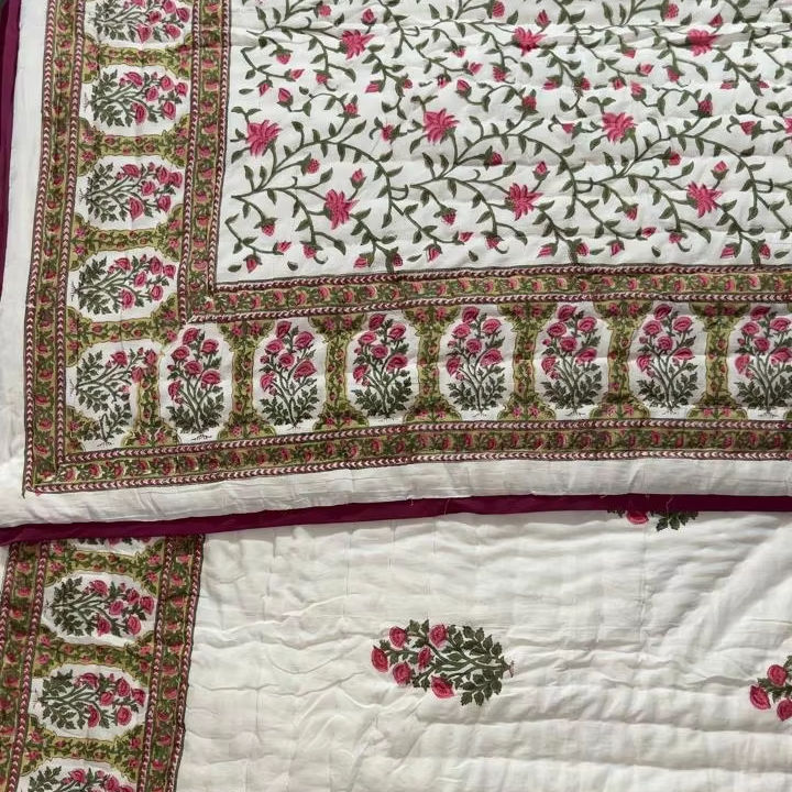 New Indian Handloom Print Patchwork Duvet Vintage Style Queen Size Cotton KanthaQuilt Soft Reversible Winter Blanket for Hotel