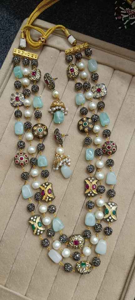 New Indian Jewellery Antique Beads Glass High-Quality Glass Multi Color Beads Three Layer mala Handmade Bulk Product Necklace
