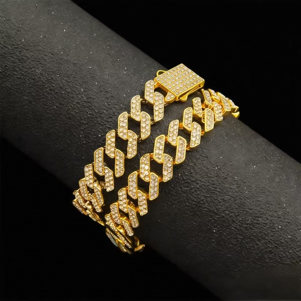 New Innovation Simple Design Colored Rhinestones Alloy Chain Bracelet Multiple Models Hiphop Style Men's Bracelet Trendy Jewelry