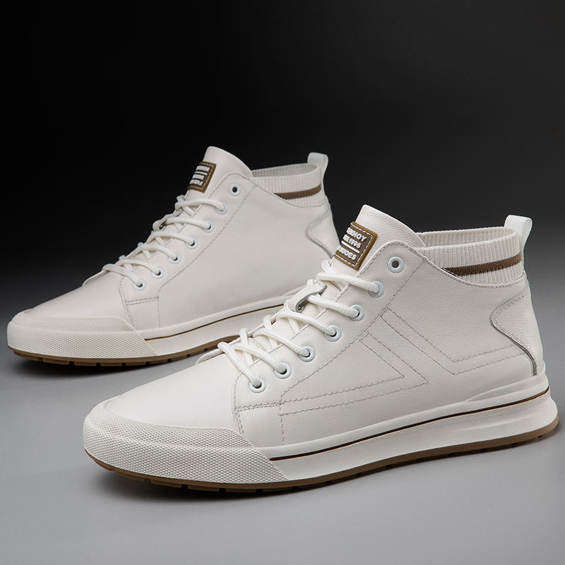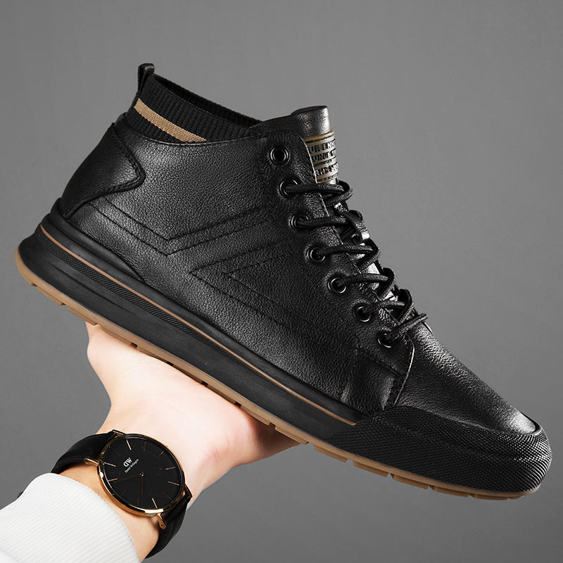 New Invisible Mid-top Breathable Genuine Leather Summer Winter All Height Increasing Shoes Men's British Style Trendy Soft Sole