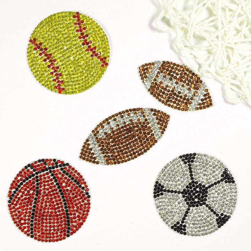 New Iron on Shiny Colorful Rhinestone Baseball Patch for Clothes Bag Decoration