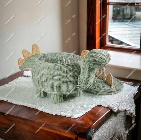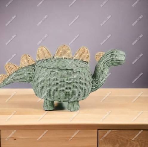 New Item Little Dinosaur Basket Natural Rattan Storage Basket for Kids Cute Hamper Handmade Laundry Basket Gift for Kids