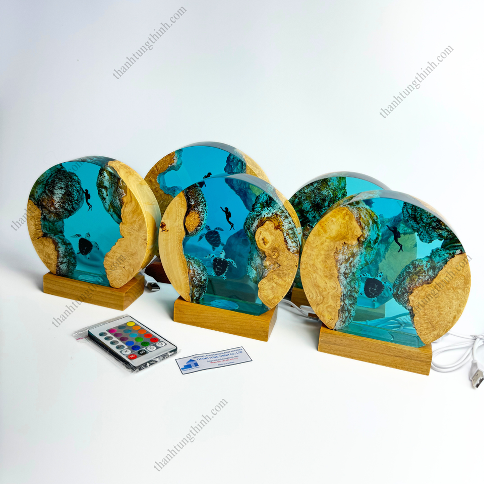 New Item - Wholesale High Quality Deep-sea Oceanic Night Lights Made From Wood and Epoxy Resin Made in Vietnam