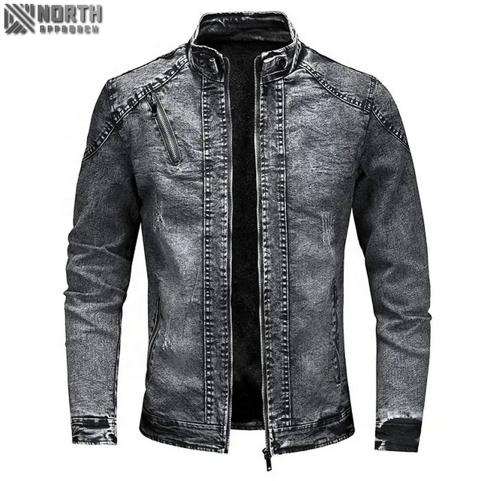 New Jackets For Men 2025 Custom Logo Oem Designs Winter Denim Canvas Jacket Blue Fleece Zipper Jeans Jacket