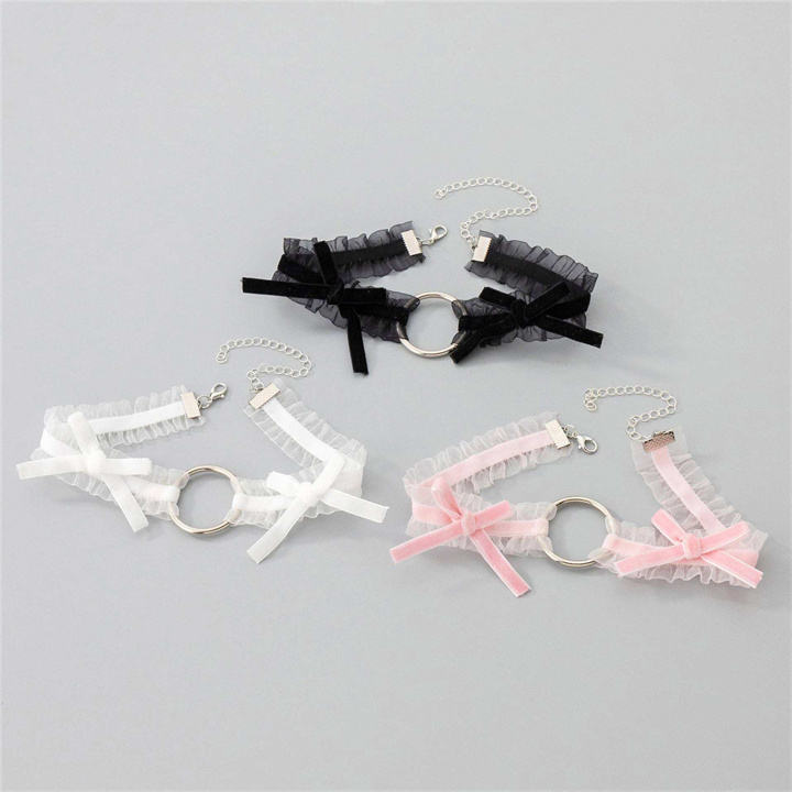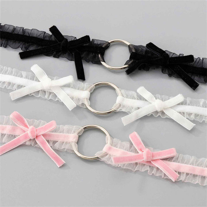New Kawaii Lolita O Ring Velvet Bowknot Lace Alloy Choker Necklace Women's Sexy Cosplay Anniversary Jewelry