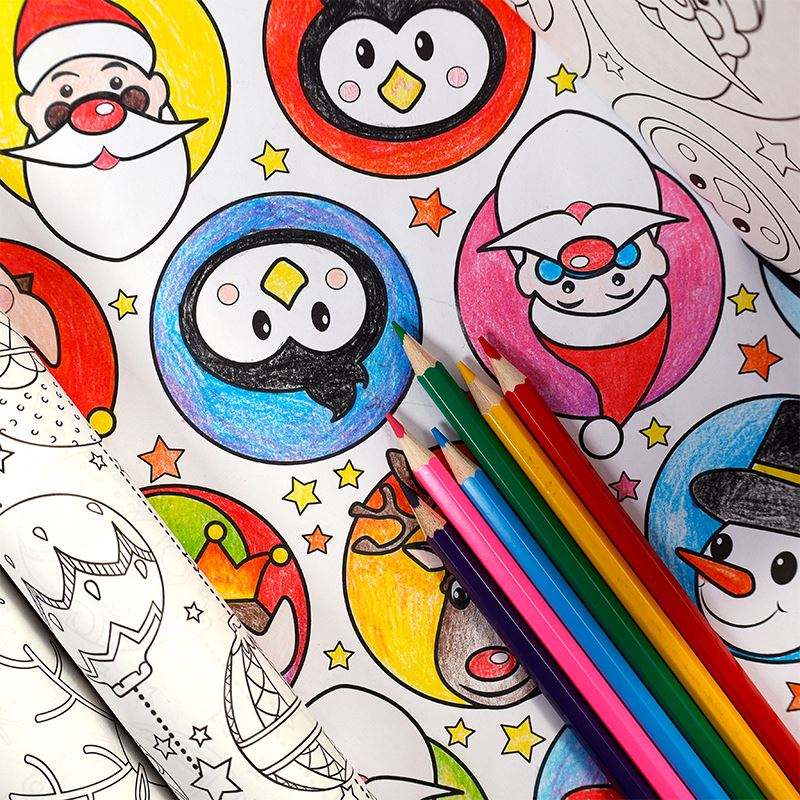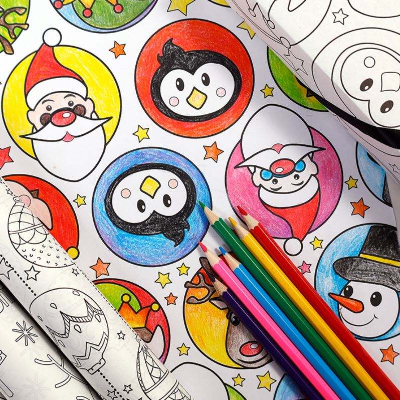 New Kids DIY Painting Christmas Gift Wrapping Paper 43*300 cm Wrapping Paper Packaging 3 Rolls a Pack with Pencil