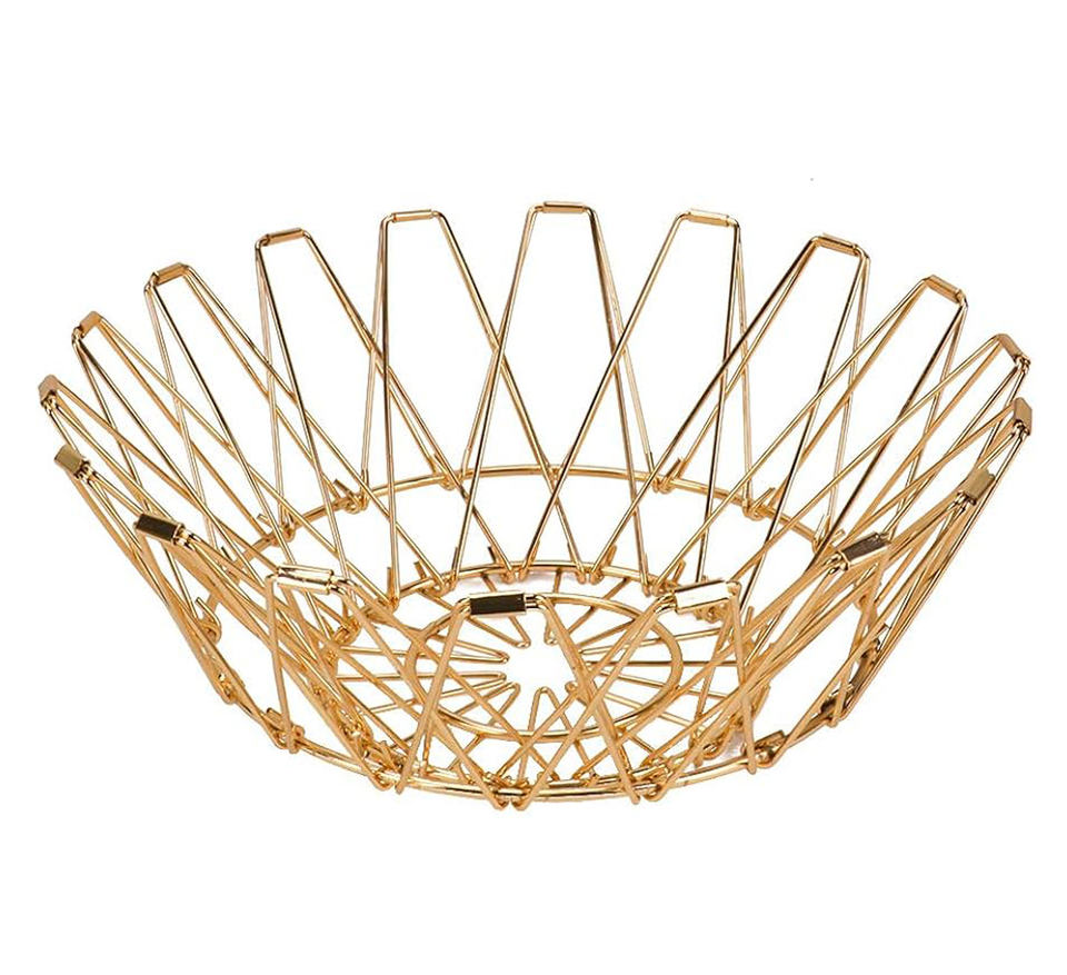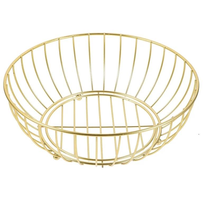 New Kitchen Counter or Dining Table Top Decor Iron Wire Metal Fruit Basket Gold Finishing Fruit Storage Metal Basket.