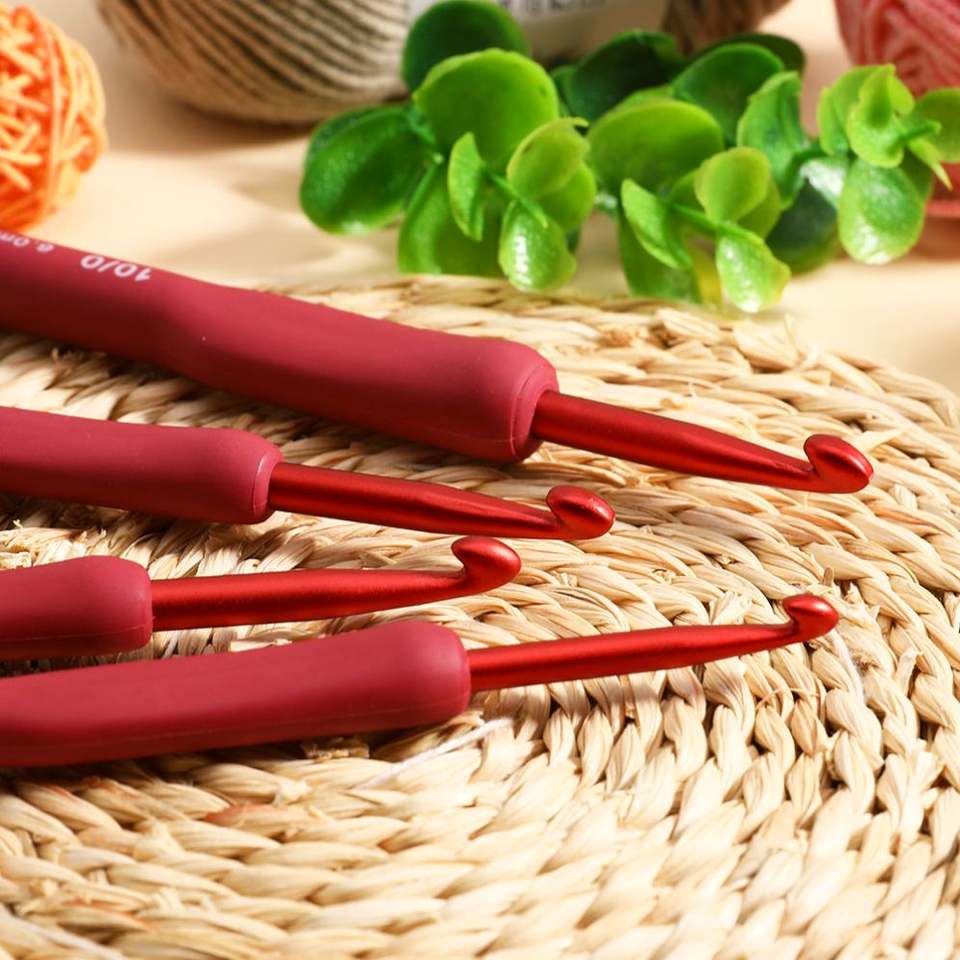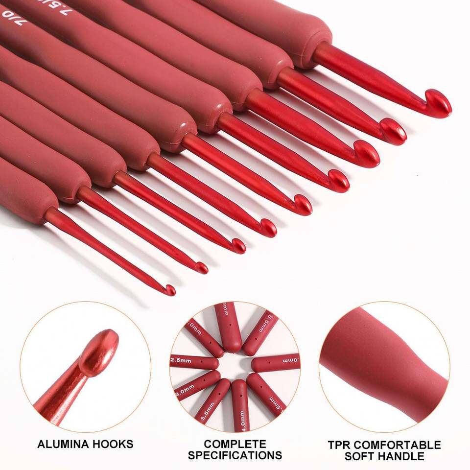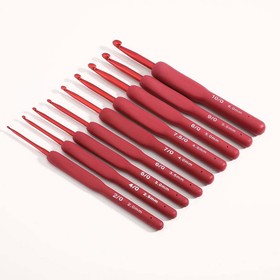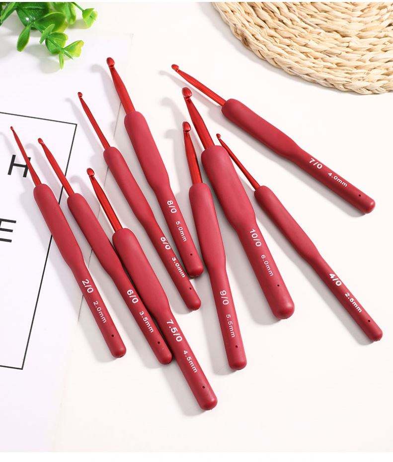 New Knitting Tool Tpr Silica Gel Red Handle Glue Aluminum Crochet Complete Set of 9