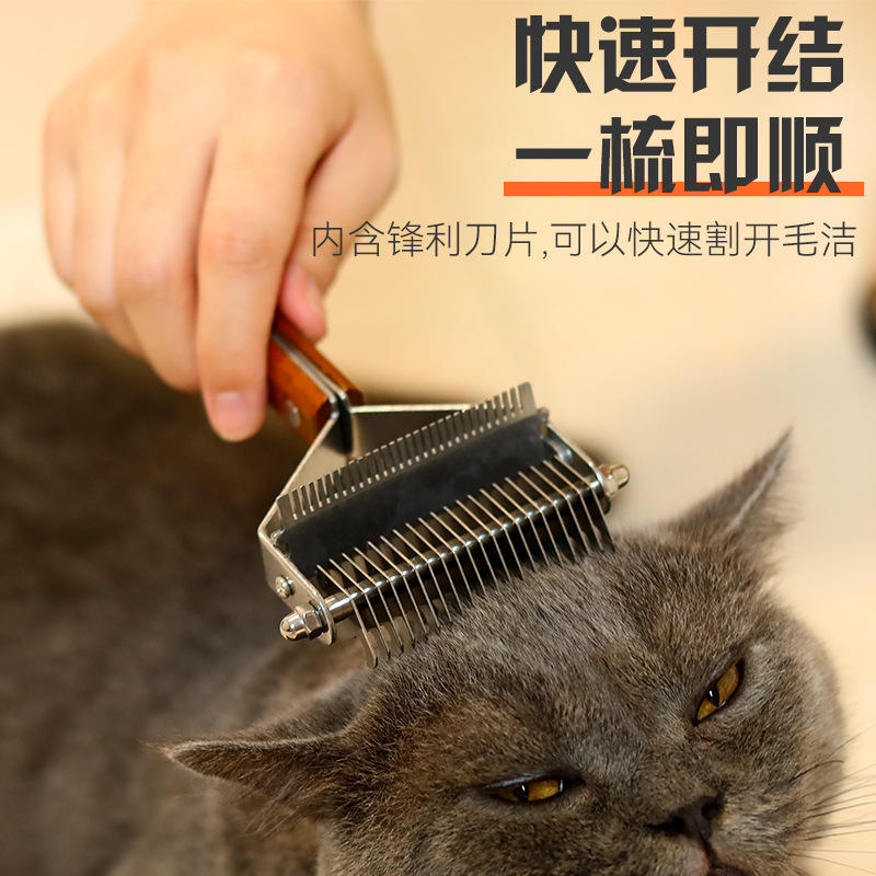 New Knot Dog Shedding Wooden Handle Cat Double-Sided Comb Stainless Steel Pet Grooming Brush