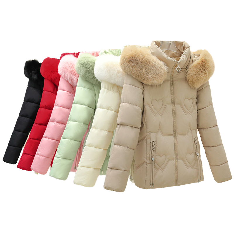 New Ladies Winter Coat Fur Collar Women's Cotton Hooded Jacket Casual Warm Outerwear for Girls Zipper Closure Woven Weaving