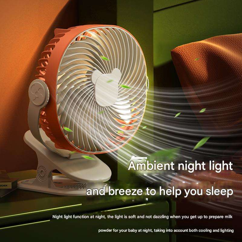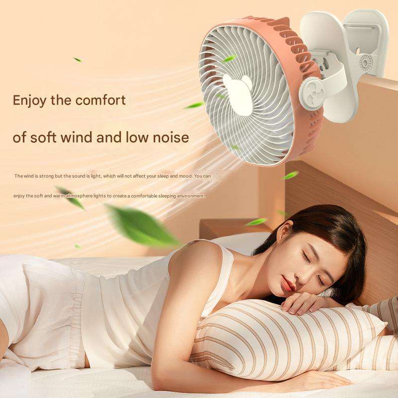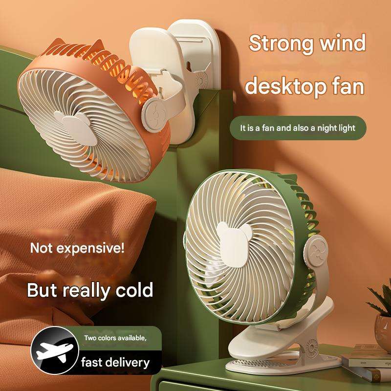 New Large Clip Desktop Bedroom Student Dormitory USB Rechargeable Desk Fan with Night Light Long Life