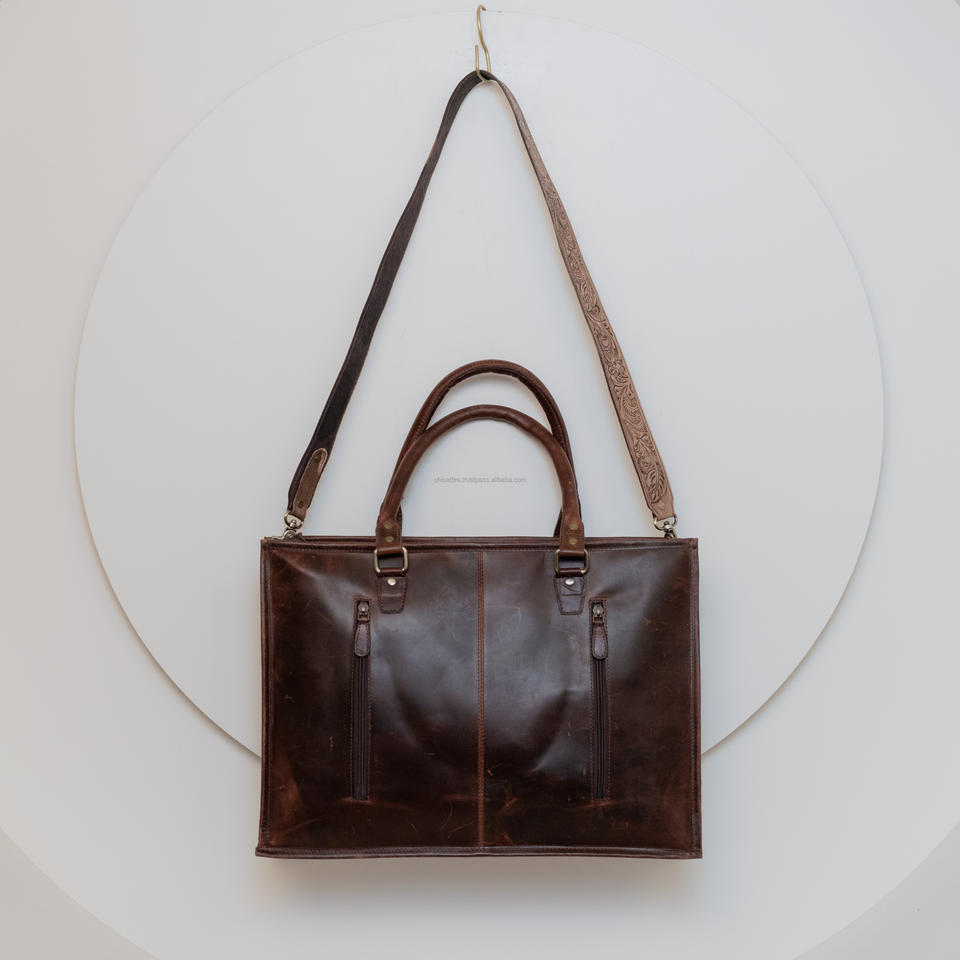 Product name:Brown Hand Tooled Leather Tote Bag