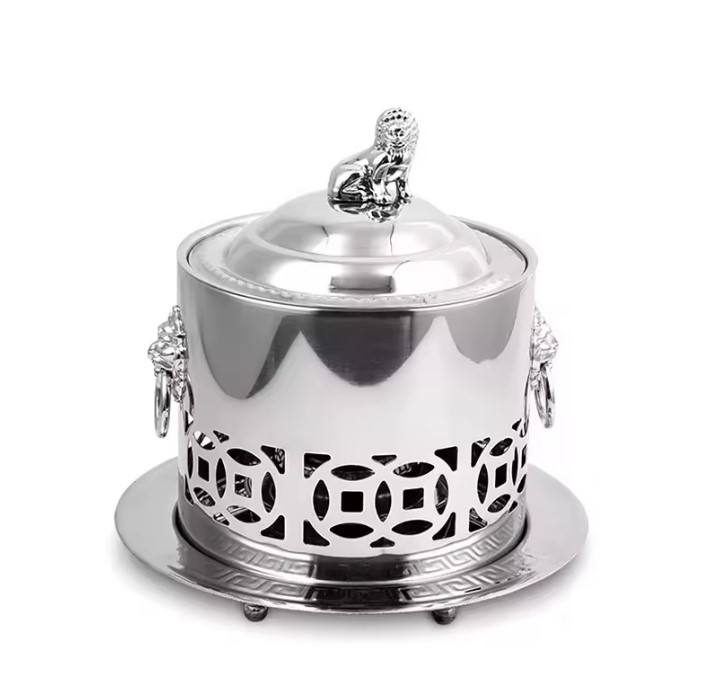 New Laser Cut Silver Stainless Steel Eco-Friendly Modern Casserole Stainless Steel Cover Gas Induction Ready for Hotel Wedding