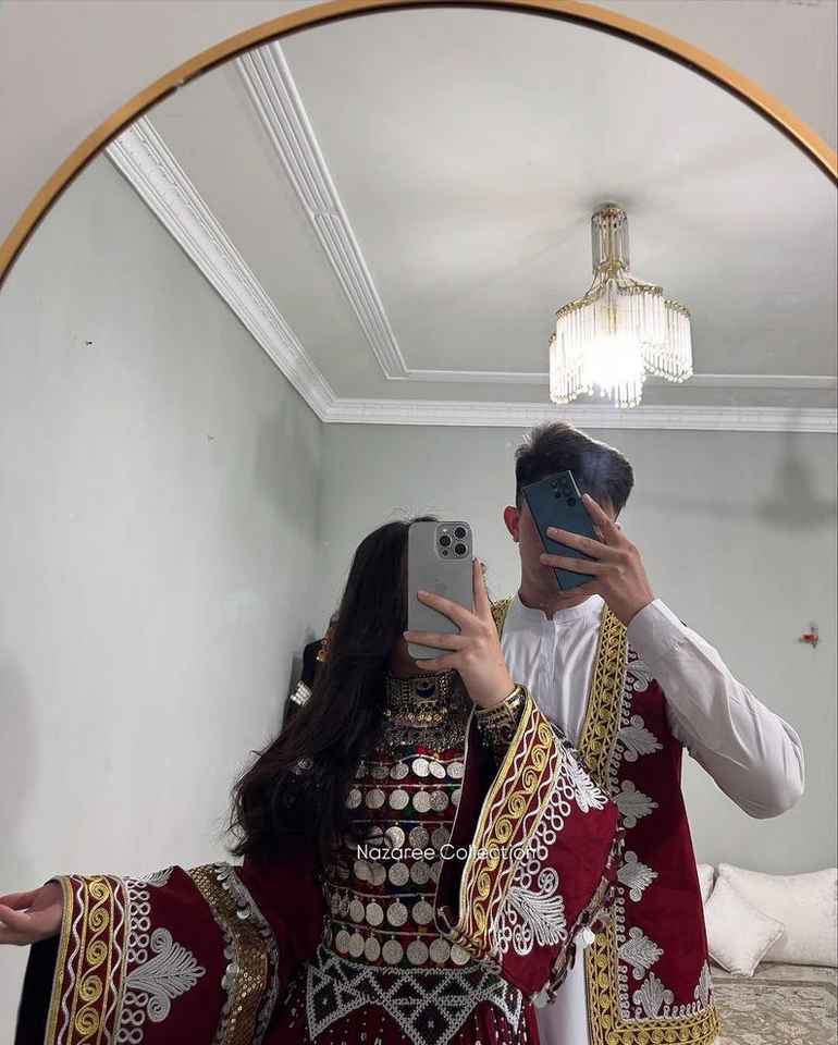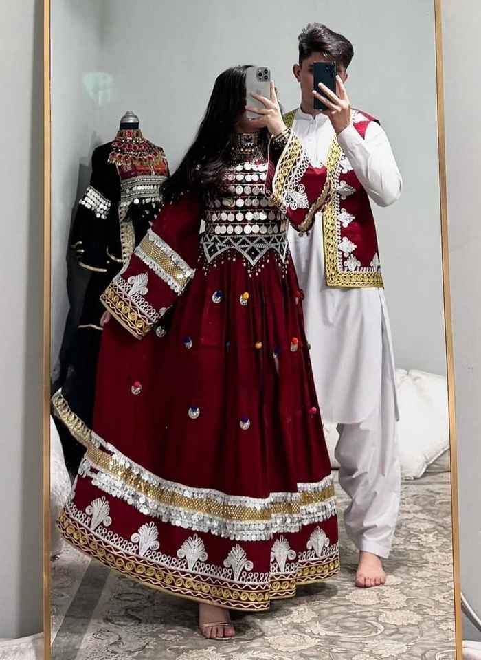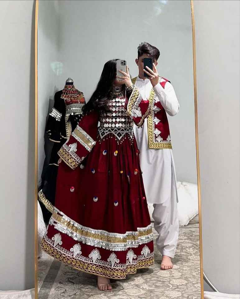 New Latest Arrival Red Color Embroidered Dress With Couple Matching Vest Afghan Vintage Formal Dresses