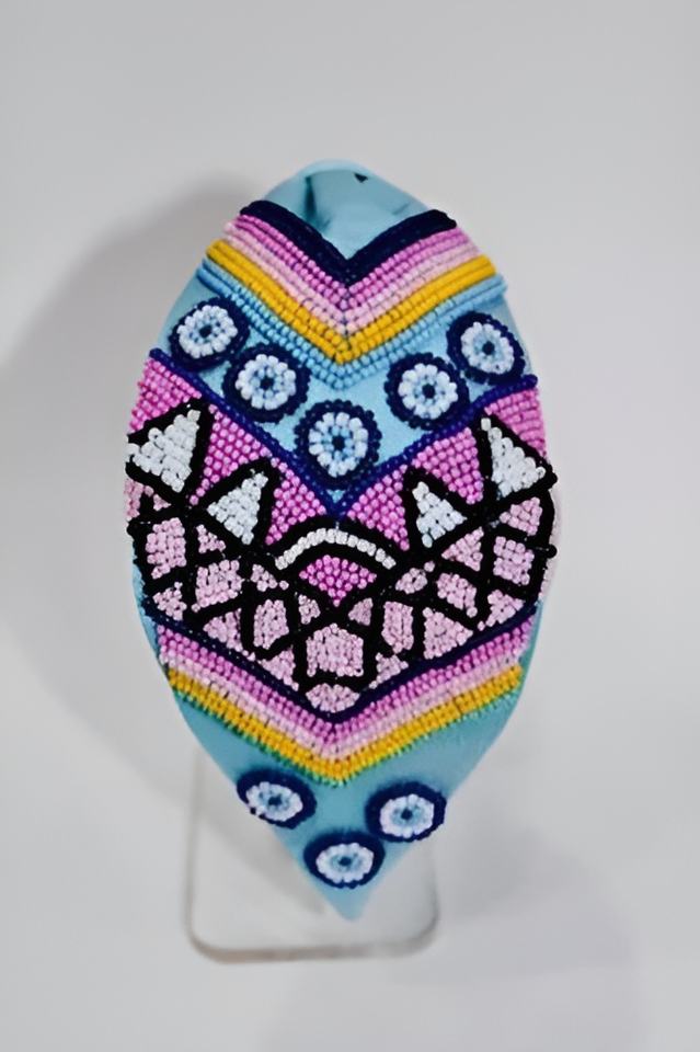2025 New Latest Design Cotton Yellow Hand Embroidered Beaded Hair Bands Fabric Headband for Girls Party Wear
