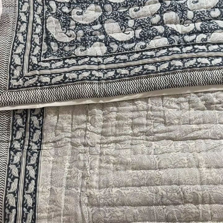 New Latest Design Organic Cotton Voile Bedding Set Handmade Quilt Reversible Razai Hand Block Printed Patchwork Warm Home Quilt