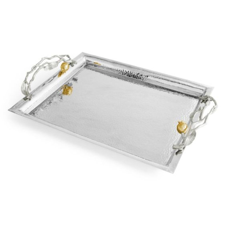 New Latest Design Silver Rectangle Tray With Gold Leaf Accents Tableware Food Snacks Serving Tray For Hotel Restaurant Supplies