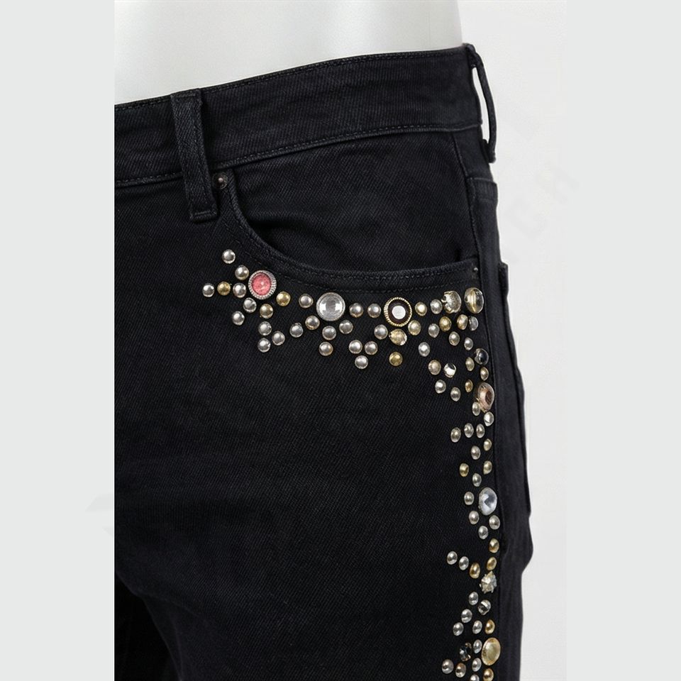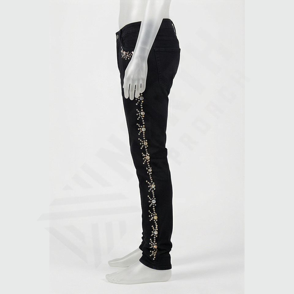 New Latest Fashion Custom Men's High Quality Denim Jeans Rhinestone Streetwear Mid Waist Washed Loose Hip Hop Pants Bulk