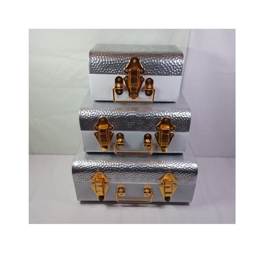 New Launch Vintage Metal Beautify Gray Dorm Storage Trunk Set 2 Box For Lockable and Decorative