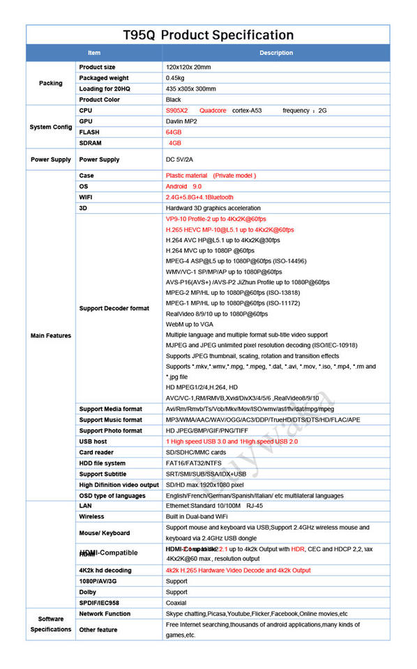 New Leadcool Android 9.0 T95Q Smart TV Box Amlogic S905X2 Quad Core Set Top Box 4GB 32GB Storage 4K HDR10+ Resollution
