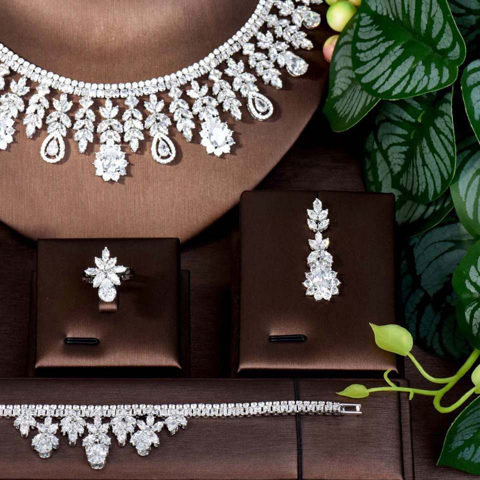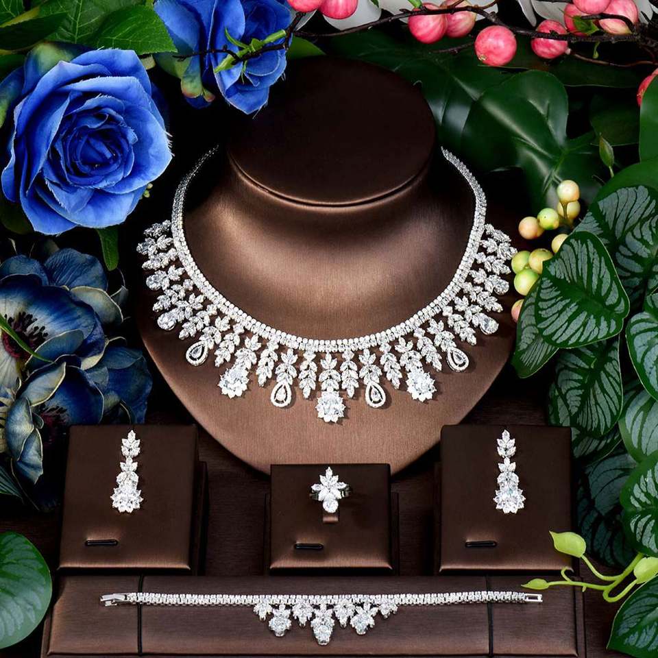New Leaf Water Drop 4pcs Necklace Earring Sets Cubic Zircon Jewelry Sets for Dubai Nigeria Women Bridal Jewelry Bijoux S-334
