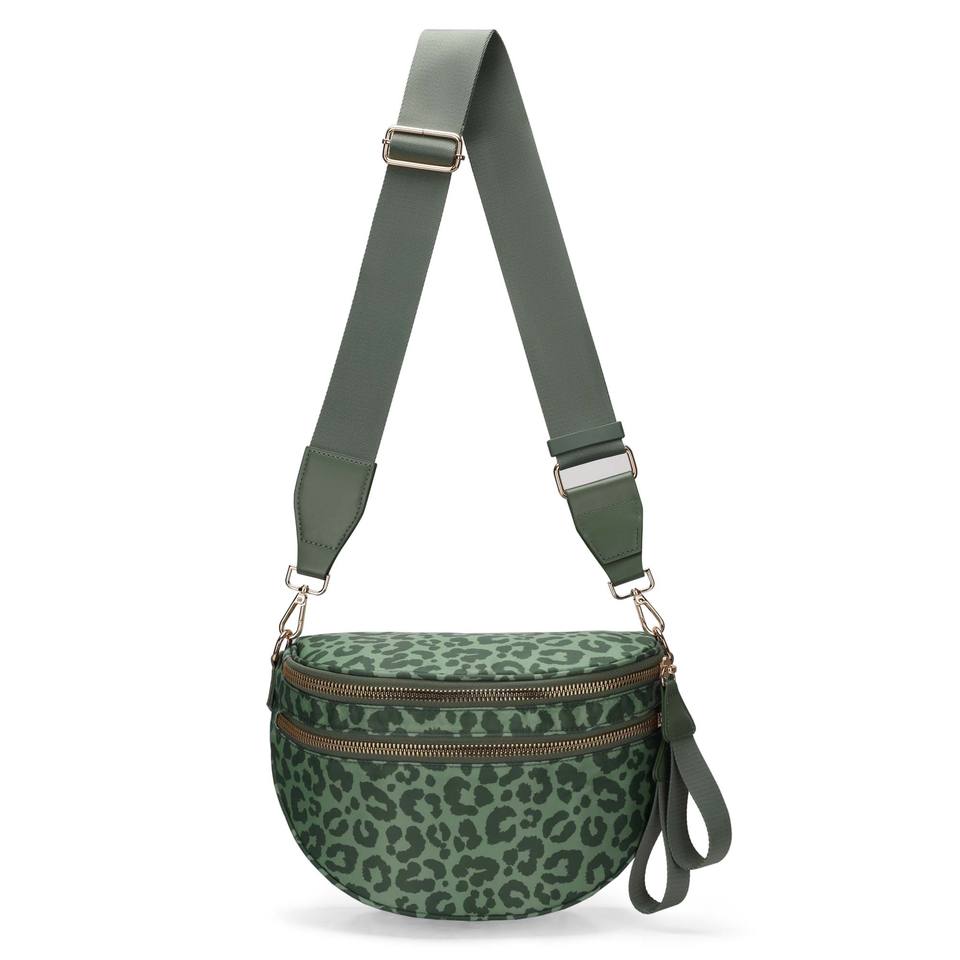 New Leopard Pattern Chain Charms Fanny Pack for Women Fashionable Nylon Waist Bag Crossbody Shoulder Purse for Travel Ladies