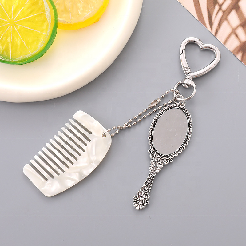 New Leopard Pattern Comb Keychain Pendant Cute Fashion Heart Makeup Mirror Bag Hanging Ornament