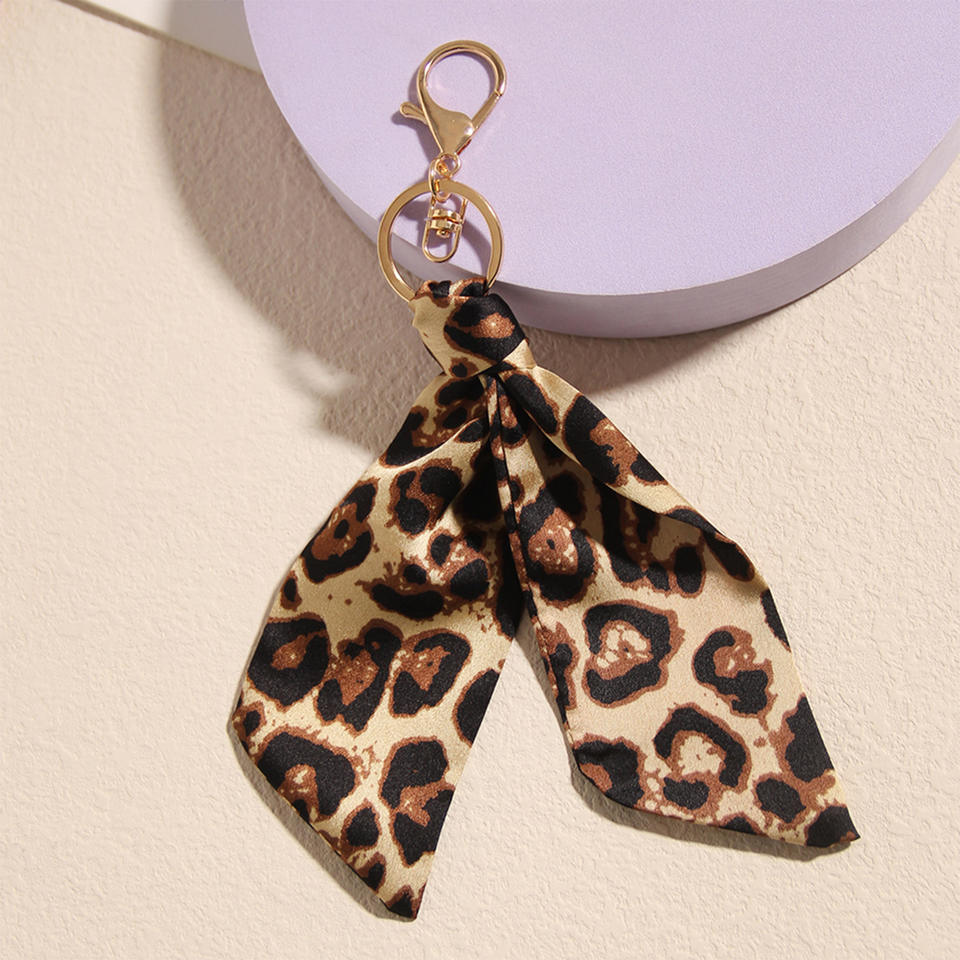 New Leopard Print Fabric Pendant Keychain Bag Accessories Jewelry Car Pendant Creative Alloy Keychain Gift