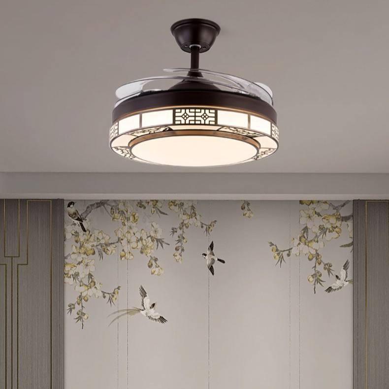 New Light Luxury Invisible LED Ceiling Fan Modern Casual Bedroom Crystal Fan Lamp Integrated Frequency Conversion