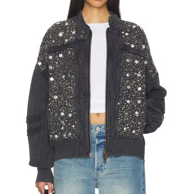 New Light Weight 380gsm Oversized Custom sparkling Sweatshirt Vintage Long Sleeve retro solid color Pullover Sweatshirts