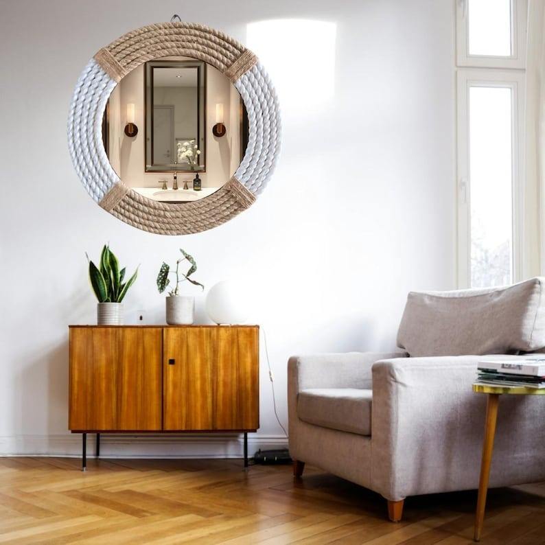New Light Wood Finish Round Resin Wall Mirror Handmade Decorative Mirror for Living Room Bathroom Bedroom Minimalist Decor