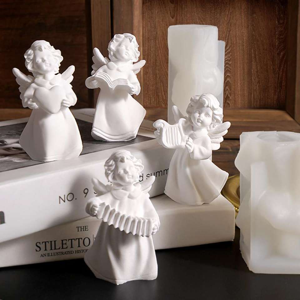 New Little Angel Cupid Candle Musical Instrument Harp Little Angel Love Cupid Gypsum Candle Silicone Mold